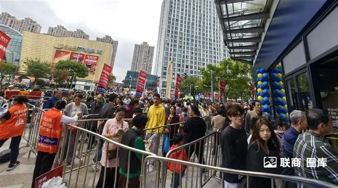 今天早上8:00未到,門口用鐵馬區(qū)隔處就排滿了顧客。一開門,顧客便蜂擁而入,賣場很快就擠滿了顧客,門店不得不階段性地采取限流措施。
