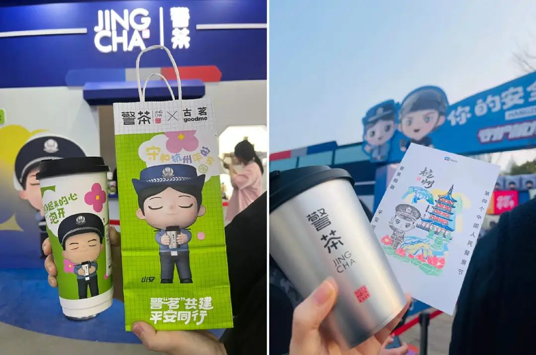 今年,恰逢1月10日人民警察節(jié),杭州公安與霸王茶姬聯(lián)名,推出節(jié)日限定版“警茶”及徽章、抱枕等周邊;