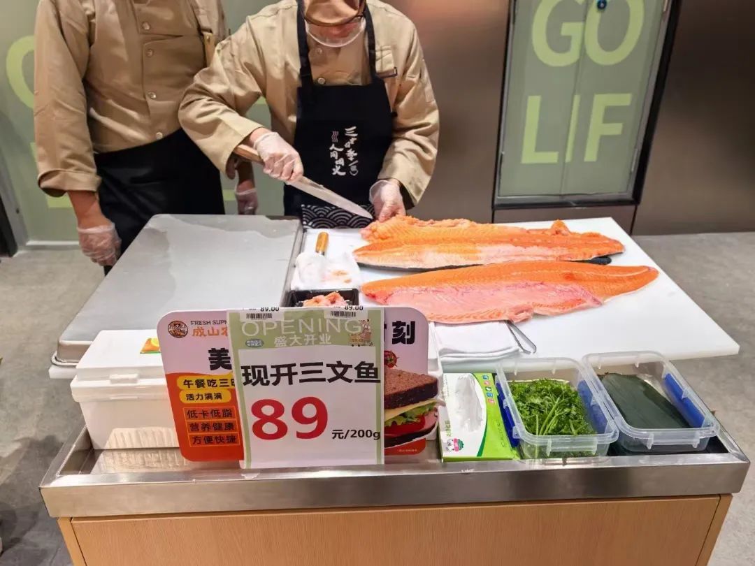 據(jù)劉帥偉向《零售圈》介紹,本次開店,細研了社區(qū)銷售場景,與同等面積成山農(nóng)場門店食品和百貨的經(jīng)營單品數(shù)對比,單品數(shù)降低了接近30%,主要增加了商品的寬度,壓縮了商品的深度,在壓縮食品和百貨商品單品數(shù)量的同時,結合社區(qū)商業(yè)對生鮮商品多層次的需求,大力開發(fā)加工類商品,生鮮單品數(shù)達到了1000多支,也使生鮮食品單品總數(shù)達到了門店單品數(shù)量的90%,個人護理、清潔用品、家用百貨等的非食品類的單品總數(shù),只占10%,這種單品配比,也是應對新的銷售趨勢做出的積極轉變。