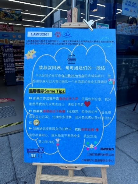 為了幫助孤獨(dú)癥孩子逐漸提高社交能力、溝通能力,更好地融入社會(huì),上海羅森便利有限公司攜手上海愛(ài)好康復(fù)培訓(xùn)機(jī)構(gòu)計(jì)劃定期開(kāi)展線(xiàn)下羅森門(mén)店實(shí)踐課程。