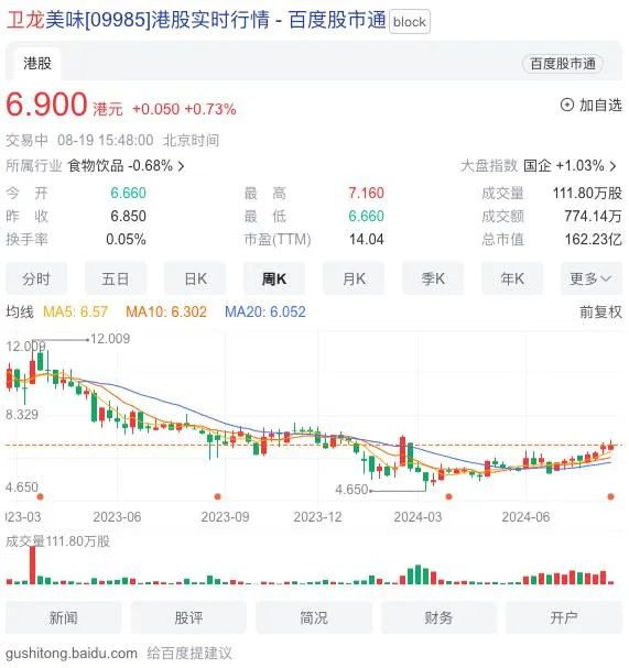 不過頗為反常的是,資本市場并未因亮眼的業(yè)績而“高看”衛(wèi)龍美味。目前,衛(wèi)龍美味的股價仍徘徊在低位,較高點(diǎn)縮水43.16%。