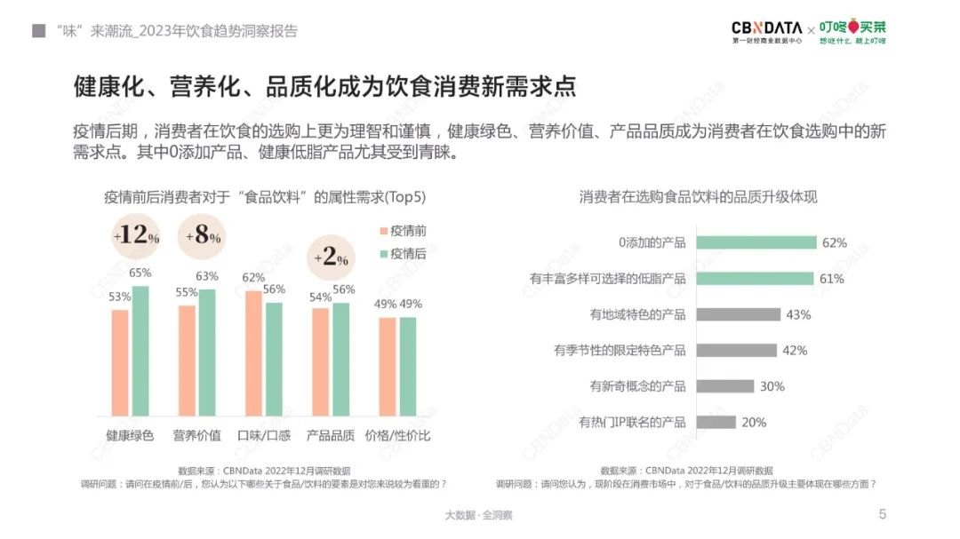 衛(wèi)龍美味的調(diào)味面制品市場影響力之所以觸及瓶頸,很大程度上都是因?yàn)橄掠蜗M(fèi)市場需求生變。近年來,隨著居民收入水平提升,消費(fèi)者在飲食需求上出現(xiàn)了消費(fèi)升級趨勢。CBNData披露的《2023年飲食趨勢洞察報告》顯示,“健康化、營養(yǎng)化、品質(zhì)化成為飲食消費(fèi)新需求點(diǎn)”。