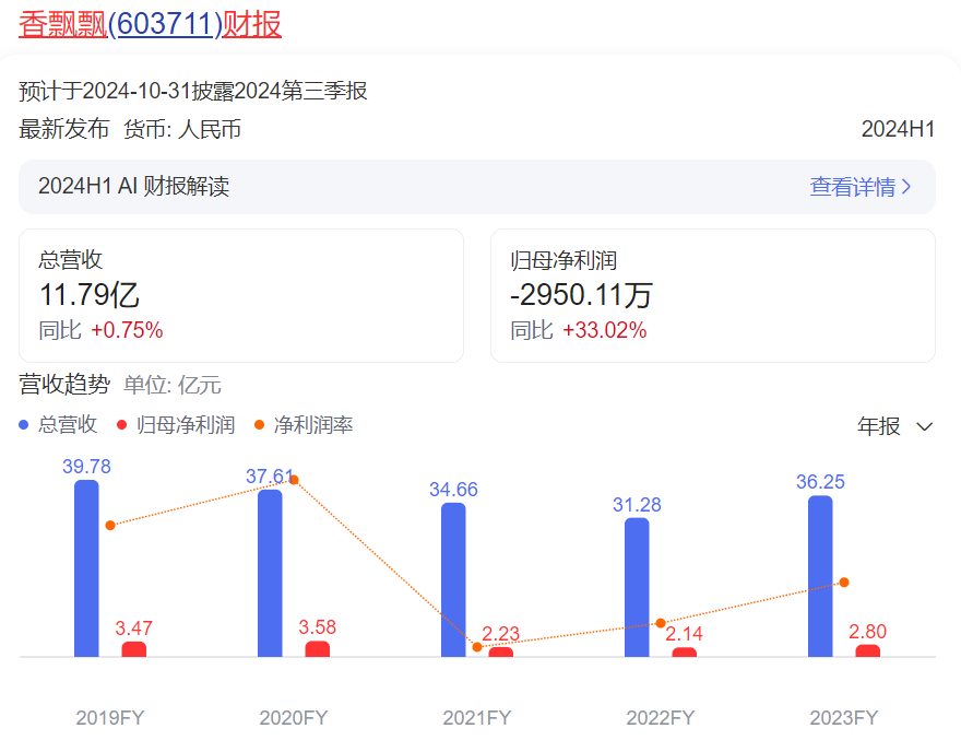 前段時間,香飄飄披露了2024年上半年財報。財報顯示,報告期內(nèi),香飄飄實現(xiàn)營業(yè)收入約11.79億元,同比增長0.75%;歸屬于上市公司股東的凈利潤約為-0.3億元,同比增長33.02%。可以看到,雖然相較去年同期,香飄飄的營業(yè)收入和歸屬于上市公司股東的凈利潤都有所增長,但前者增長不明顯,香飄飄也仍未擺脫虧損的局面。