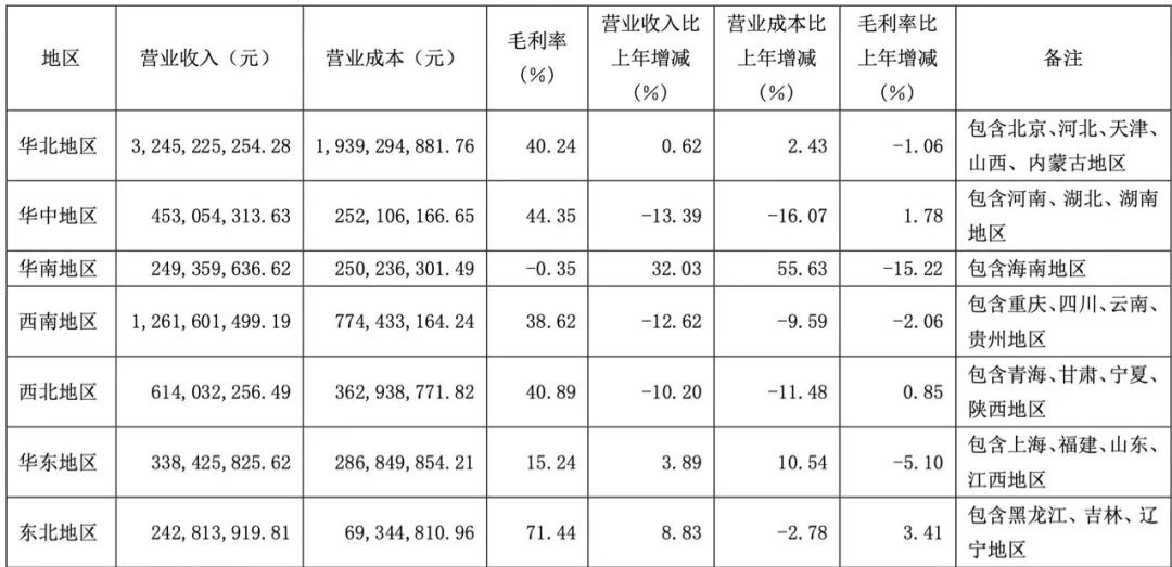 圖為2024年上半年王府井旗下各大區(qū)營(yíng)收情況