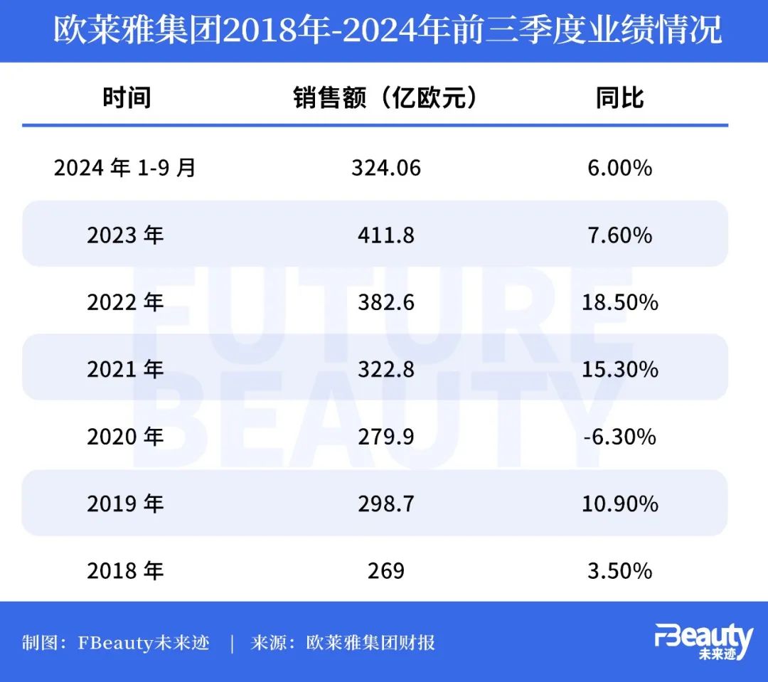 綜合歐萊雅集團近年來總體業(yè)績表現(xiàn)來看,盡管今年前三季度增速有所放緩,但正如歐萊雅集團首席執(zhí)行官葉鴻慕(Nicolas Hieronimus)公開表示:“考慮到全球背景,我對歐萊雅的整體增長感到非常滿意!痹诮衲杲(jīng)濟形勢受到較大挑戰(zhàn)的情況下,歐萊雅集團的表現(xiàn)依舊可以用穩(wěn)健來形容。