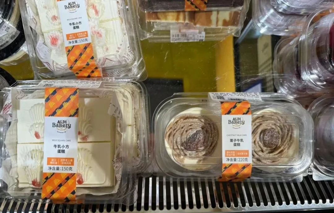 令人眼前一亮的是,金山首店還設(shè)置了甜品蛋糕柜,里面除了類似網(wǎng)紅爆款的甜點(diǎn),如提拉米蘇、榴蓮千層、瑞士卷外,還有上海風(fēng)味的甜點(diǎn),如栗子牛乳蛋糕、牛乳小方蛋糕。這兩樣是上海老牌烘焙店凱司令和紅寶石的熱銷款,幾十年來深受上海人民的喜愛?梢,自有單品研發(fā)方面,奧樂齊的確是下了功夫。