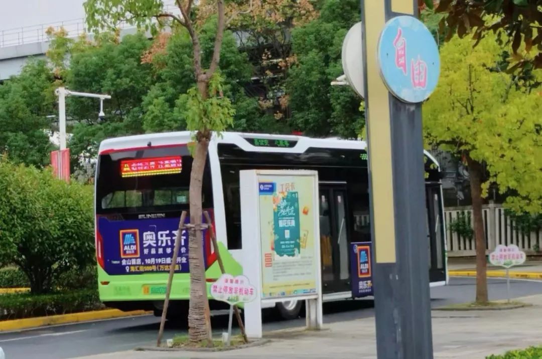 開業(yè)前,奧樂齊金山首店門口就支起了雨棚,開始辦理會(huì)員招募業(yè)務(wù)。而宣傳工作早已展開,部分公交上貼滿了開業(yè)宣傳海報(bào),還特別推出了免費(fèi)領(lǐng)雞蛋、免費(fèi)試吃等活動(dòng)。