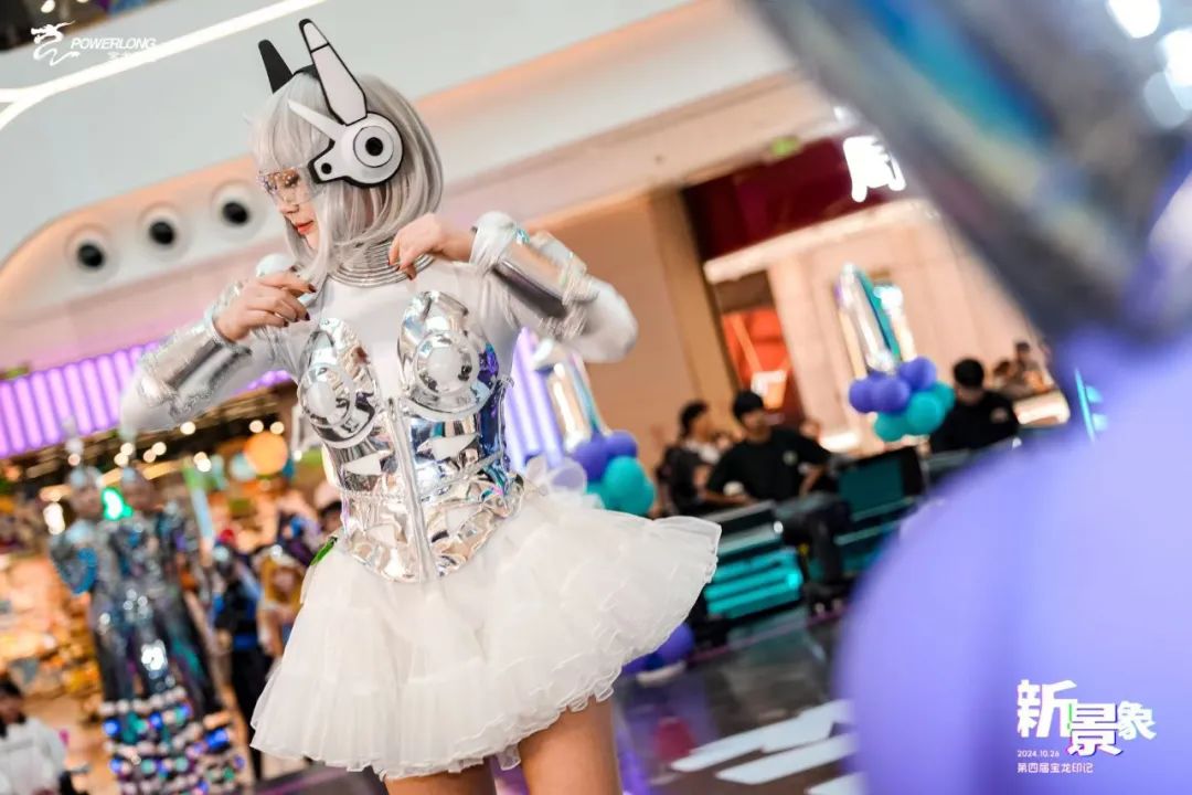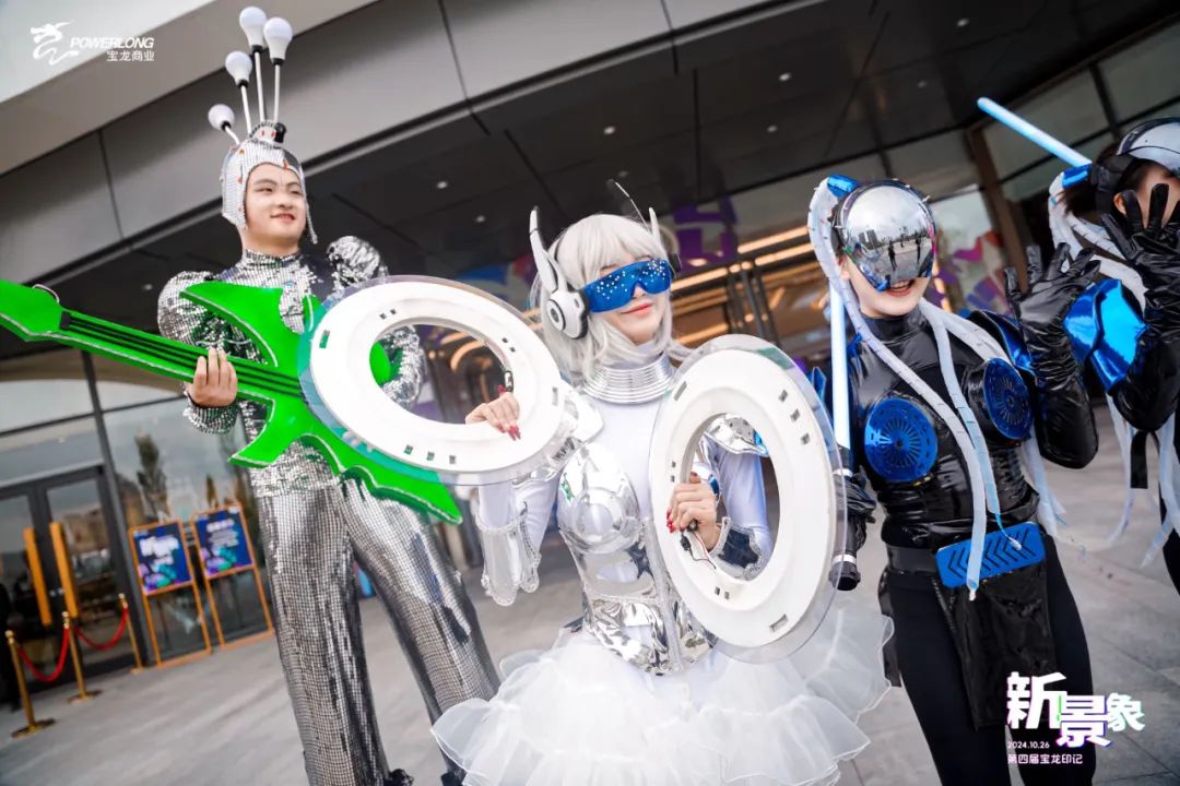 現(xiàn)場從色彩、裝置,到禮儀服裝,整體氛圍打造以自由的賽博朋克風(fēng)為基調(diào),體現(xiàn)了寶龍商業(yè)對未來與未知時刻保持的好奇心和探索欲;