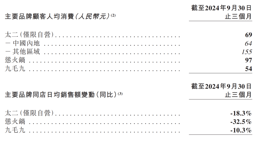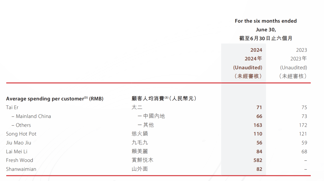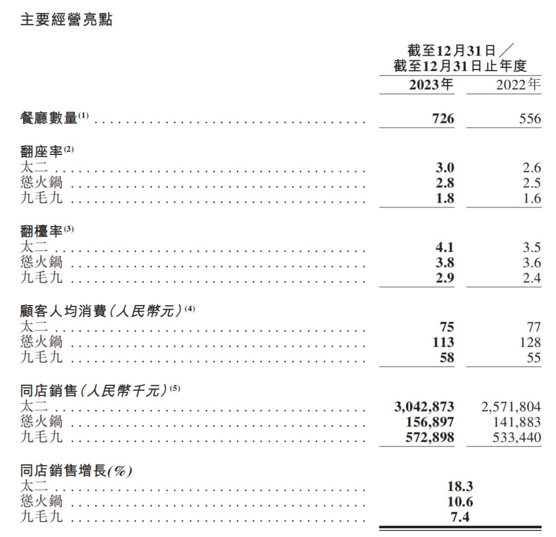 從2024年年中報(bào)來看,截止到6月30日,太二的翻臺(tái)率為3.8,到第三季度則為3.6,輕微下滑;