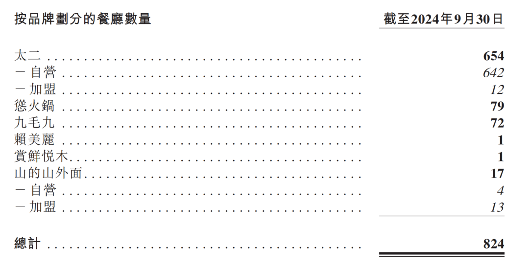 根據(jù)第三季度財(cái)報(bào)來看,目前九毛九的餐廳數(shù)量達(dá)到了824家,較第二季度新增了53家,其中太二的門店數(shù)量達(dá)到了654家,占據(jù)絕對(duì)的主力地位;