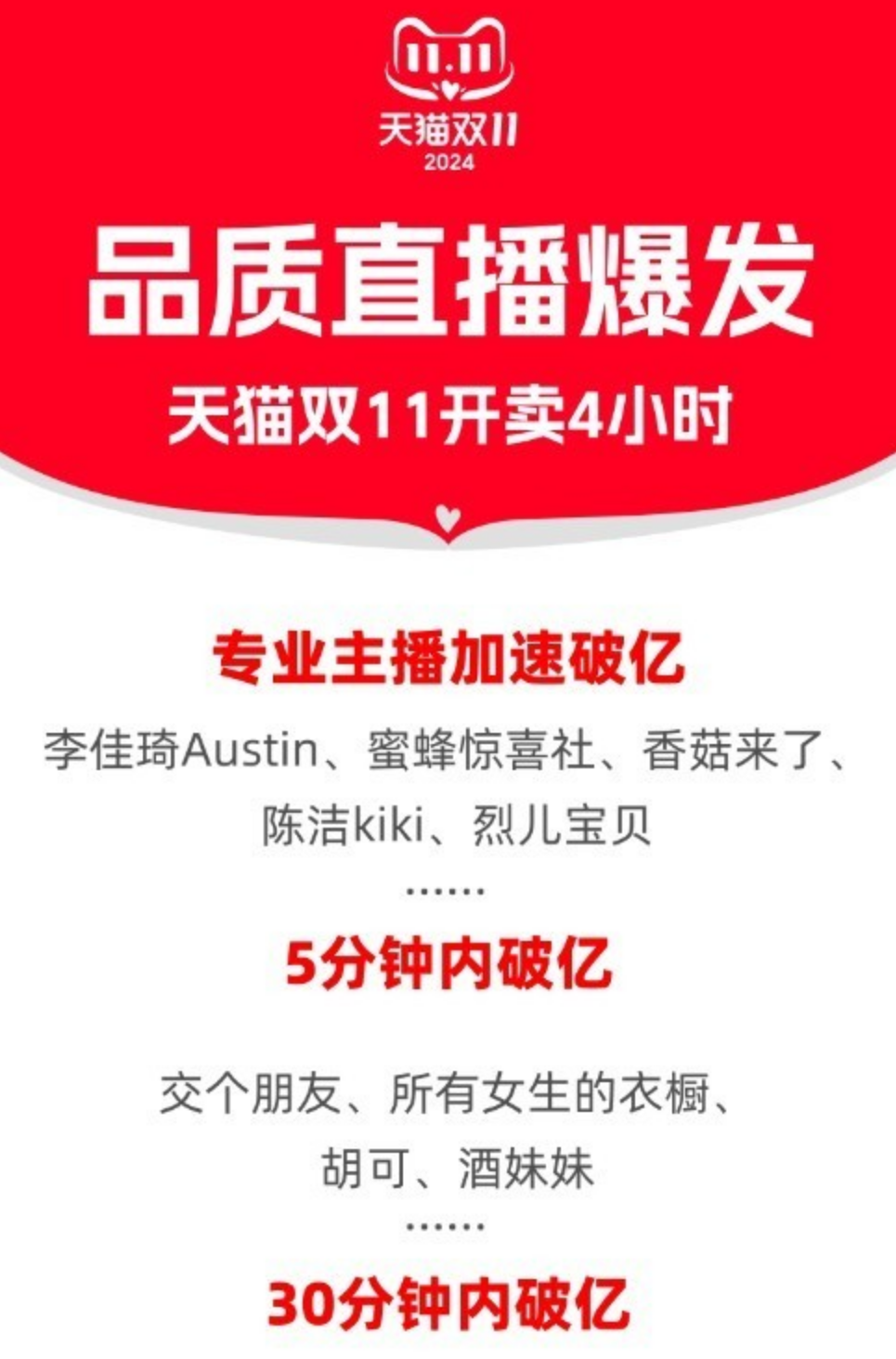 從10月21日天貓發(fā)布的雙11開門紅戰(zhàn)報(bào)可以看到,“5分鐘破億”的主播中,李佳琦、蜜蜂驚喜社、陳潔kiki、烈兒寶貝等,都是淘寶“土生土長”的帶貨主播,幾乎沒有只吃流量飯的網(wǎng)紅。