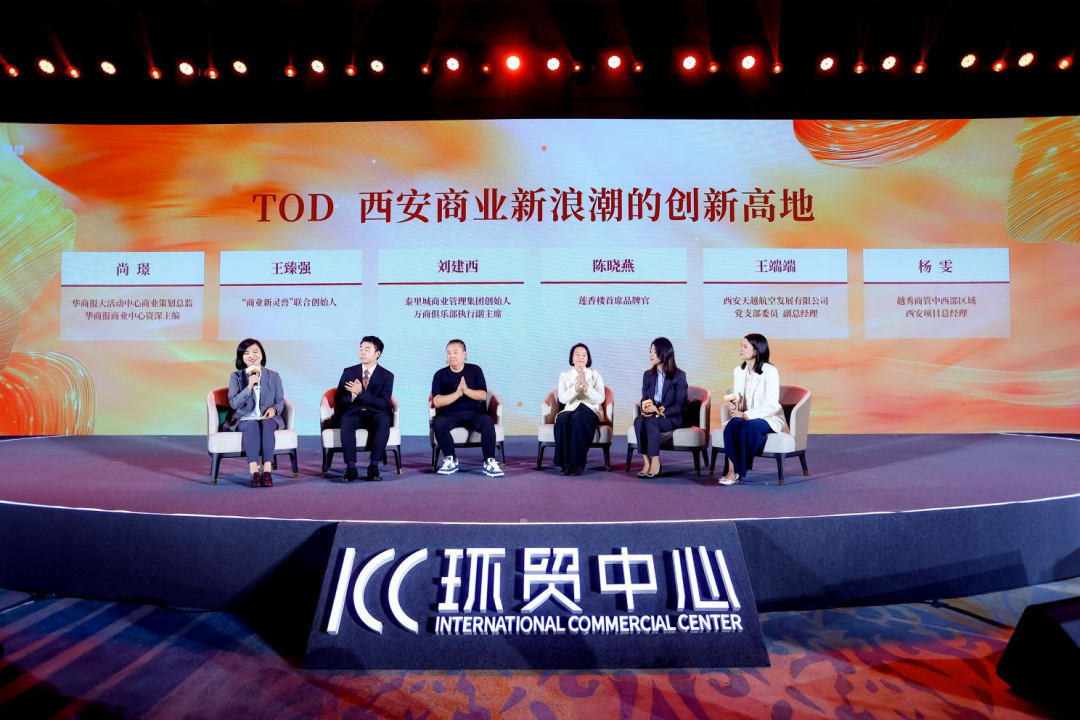 商業(yè)創(chuàng)新的背后,總是涌動(dòng)著多元的探索力量,TOD作為自帶交通優(yōu)勢(shì)的獨(dú)特模式,為商業(yè)玩法的迭代厚植了客群根基。在招商推介會(huì)上的城市高峰論壇環(huán)節(jié),萬(wàn)商俱樂(lè)部執(zhí)行副主席劉建西、廣州老字號(hào)餐飲品牌蓮香樓首席品牌官陳曉燕、華商報(bào)大活動(dòng)中心商業(yè)策劃總監(jiān)尚璟、西安商業(yè)零售自媒體《商業(yè)新靈獸》聯(lián)合創(chuàng)始人王臻強(qiáng)、西安天越航空發(fā)展有限公司黨支部委員副總經(jīng)理王端端以及越秀商管中西部區(qū)域西安項(xiàng)目總經(jīng)理?xiàng)铞┕餐疃冉涣鳎黄鹛接懥薚OD模式對(duì)于西安商業(yè)新浪潮的創(chuàng)新推動(dòng)作用,以及西安環(huán)貿(mào)中心在城市發(fā)展中的重要角色和未來(lái)的商業(yè)機(jī)遇,為商業(yè)賦能城市活力探索了新的方向。