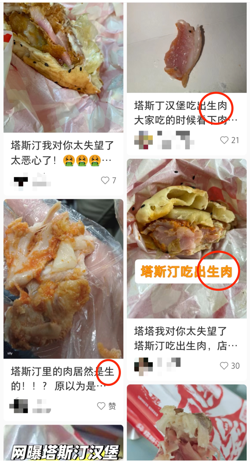 值得注意的是,塔斯汀漢堡并非首次遭遇此類負(fù)面曝光。去年10月,有網(wǎng)友在社交平臺(tái)反映,其在吃塔斯汀外賣時(shí)發(fā)現(xiàn)外賣中的雞米花、雞腿肉均未熟。網(wǎng)友因此吐槽道,“塔斯汀忍你很久了,時(shí)隔一年再次體會(huì)吃到生雞肉的惡心了”。