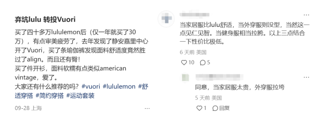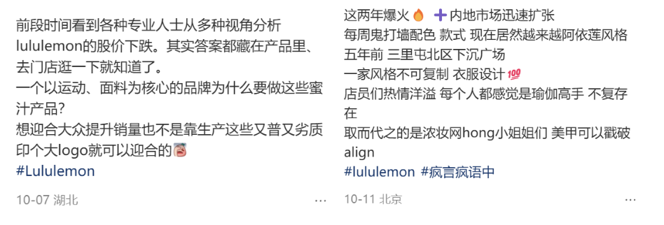 “對lululemon祛魅”幾乎成了一句流行語,家里積累的吊牌摞起來有三副撲克那么厚的忠實(shí)用戶揮劍斬?cái)嗲榻z。