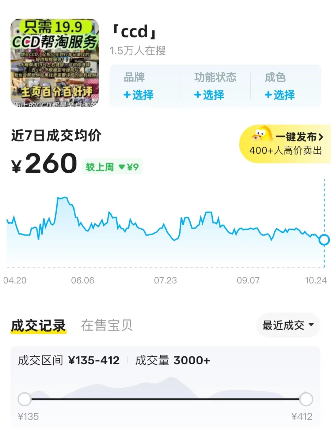 2023年閑魚就上線了“搜索行情”功能,大到山地自行車、數(shù)碼相機(jī)等商品,都有自己專屬的“行情看板”,商品的熱度、保值程度、銷量情況、成交價(jià)趨勢(shì)一目了然。