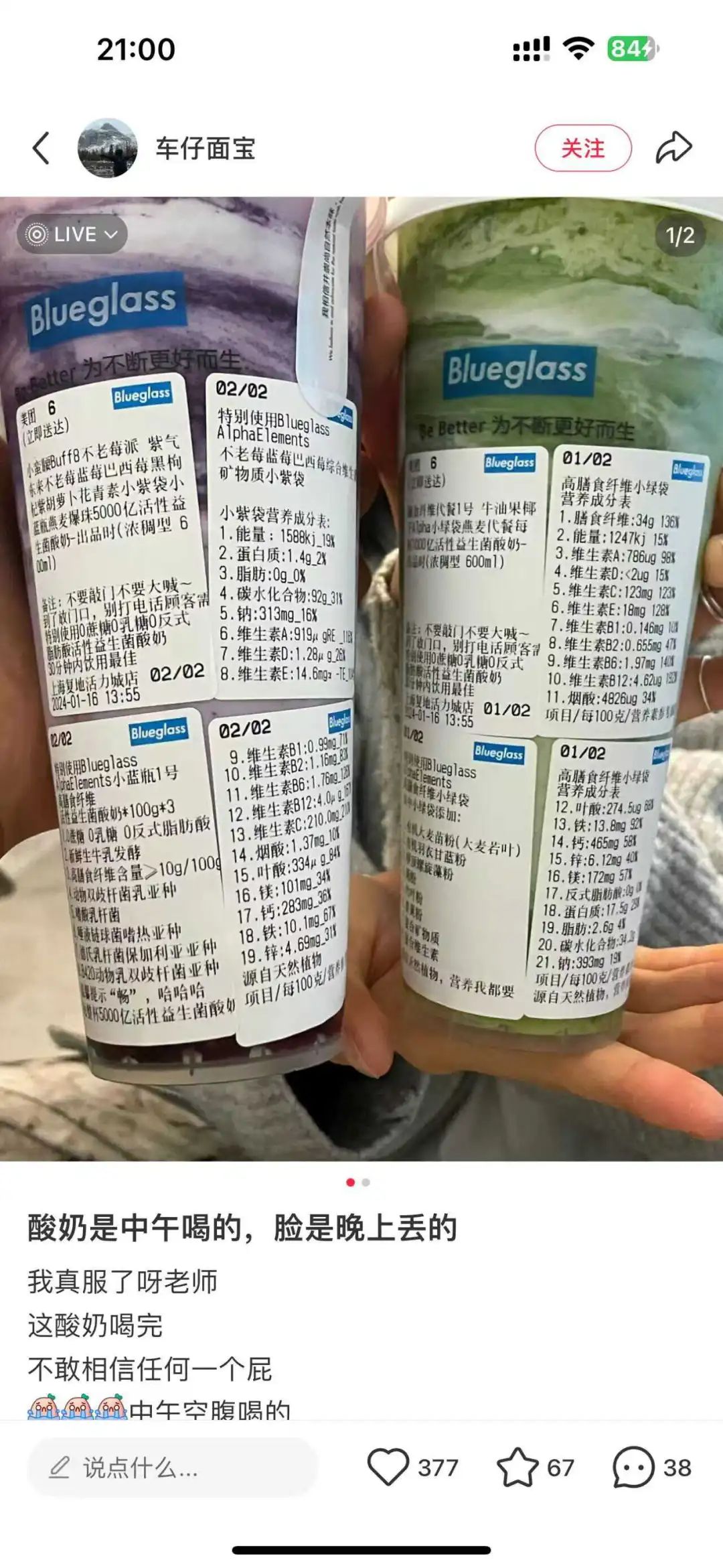 Blueglass營養(yǎng)成分表 圖源:小紅書