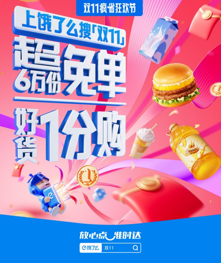 活動期間,餓了么將推出包含超6萬份免單、超10萬份商品0.01元購、滿減紅包5折起等多重優(yōu)惠好禮。消費(fèi)者在餓了么APP搜索“雙11”,即可隨時(shí)隨地參與這場即時(shí)電商的雙11大促。
