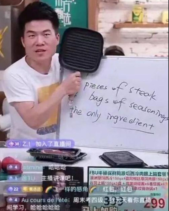 這天早上,他拿著一塊牛排在直播間上起了英語課,開玩笑地說:“得償所愿的都不是人生,陰差陽錯(cuò)的才是人生!