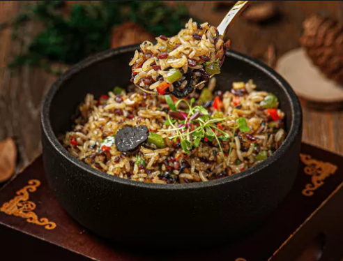 另外,這批素食餐廳還會十分注重菜品的融合創(chuàng)新,融合西餐、江浙菜、川菜等多種菜系特點,提供多樣口味。比如慶春樸門的黑松露炒飯,就選用了意大利進口的橄欖油和黑松露醬,在此基礎(chǔ)上增加黑米、糙米,中、西融合,口味更豐富。