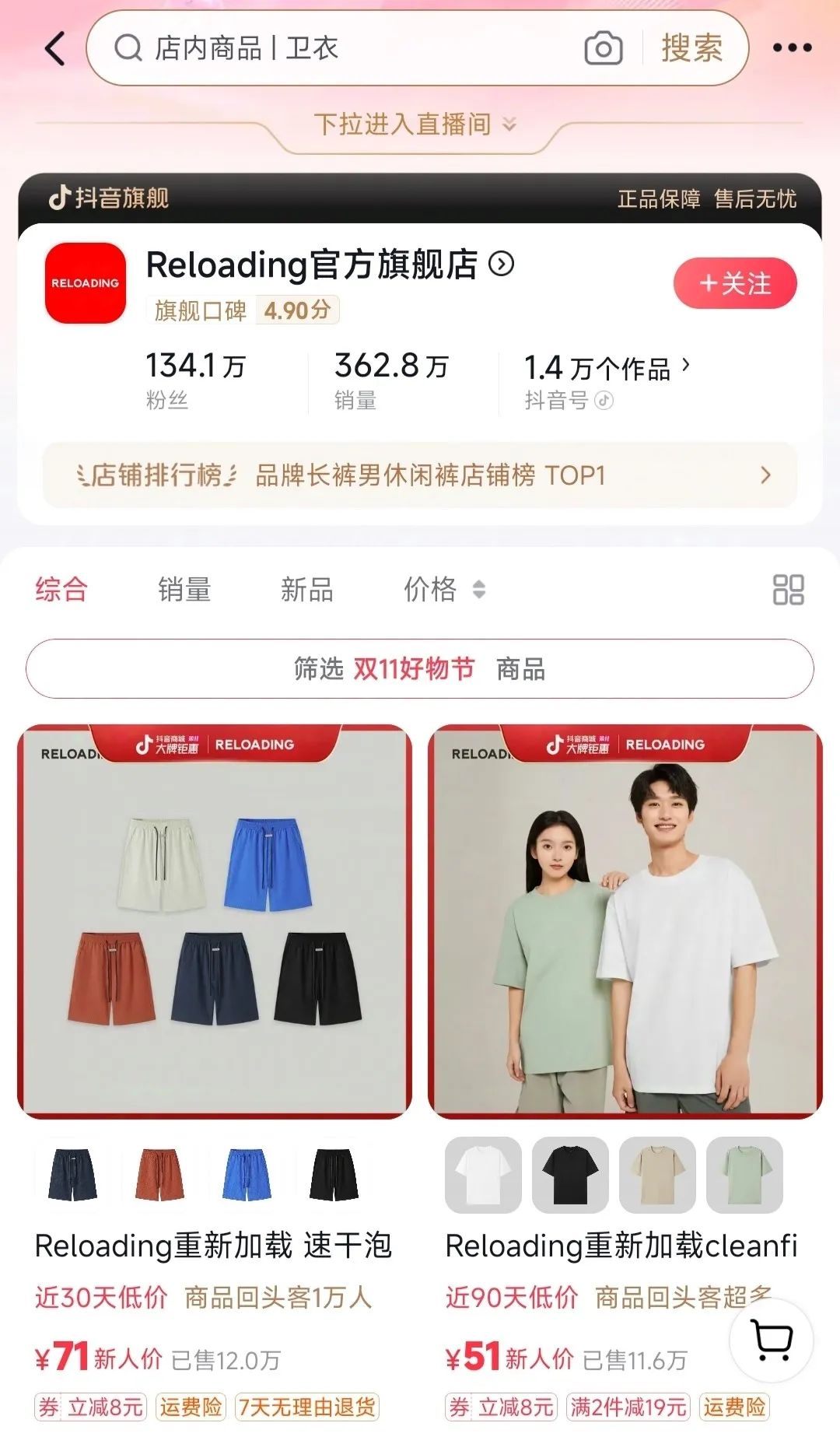 2021年啟動(dòng)線上業(yè)務(wù),半年間GMV突破1400萬(wàn);近年來(lái)的雙11活動(dòng)中,多次登頂抖音男裝榜Top1,店鋪評(píng)分高達(dá)5.0;