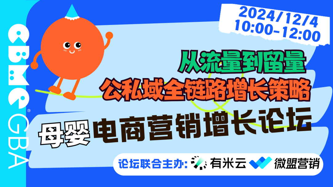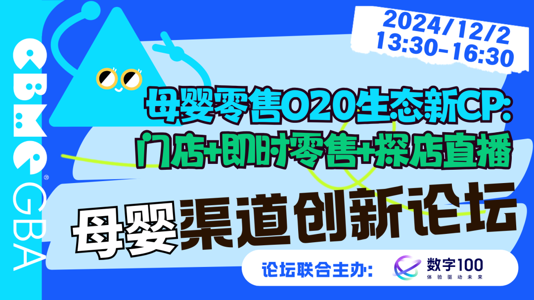 12月2日下午舉行“2024母嬰渠道創(chuàng)新論壇 | 母嬰零售O20 生態(tài)新CP: 門店+即時(shí)零售+探店直播” 特邀數(shù)字100、美團(tuán)閃購(gòu)、茉莉數(shù)科、母嬰零售方代表等一起,基于品牌、渠道、消費(fèi)者三方的共同訴求,探討母嬰如果有效布局即時(shí)零售,同時(shí),通過線上線下渠道的深度融合,實(shí)現(xiàn)全方位拓客和轉(zhuǎn)化。讓零售商、品牌商等多方母嬰從業(yè)者共同參與大會(huì),共商行業(yè)進(jìn)化新趨勢(shì)和發(fā)展新機(jī)遇。