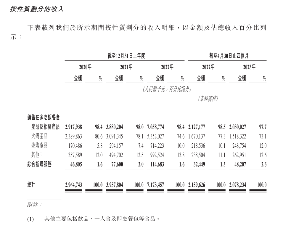 在鍋圈的財(cái)報(bào)中,具體某類產(chǎn)品的銷售數(shù)據(jù)被簡化,僅剩下整體的銷售額和占比。