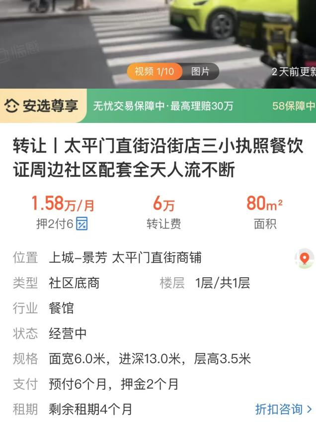 在租金方面,以浙江杭州太平門直街一店鋪為例,該商鋪報(bào)價(jià)1.58萬/月,該店鋪面積80平方米,折合單位租金6.58/m²/天。假設(shè)鍋圈的門店面積在45平米,蜜雪冰城的門店面積在30平米,那么,各自的月租金分別為8883元、5922元。此外,該商鋪還需支付6萬元的轉(zhuǎn)讓費(fèi)。