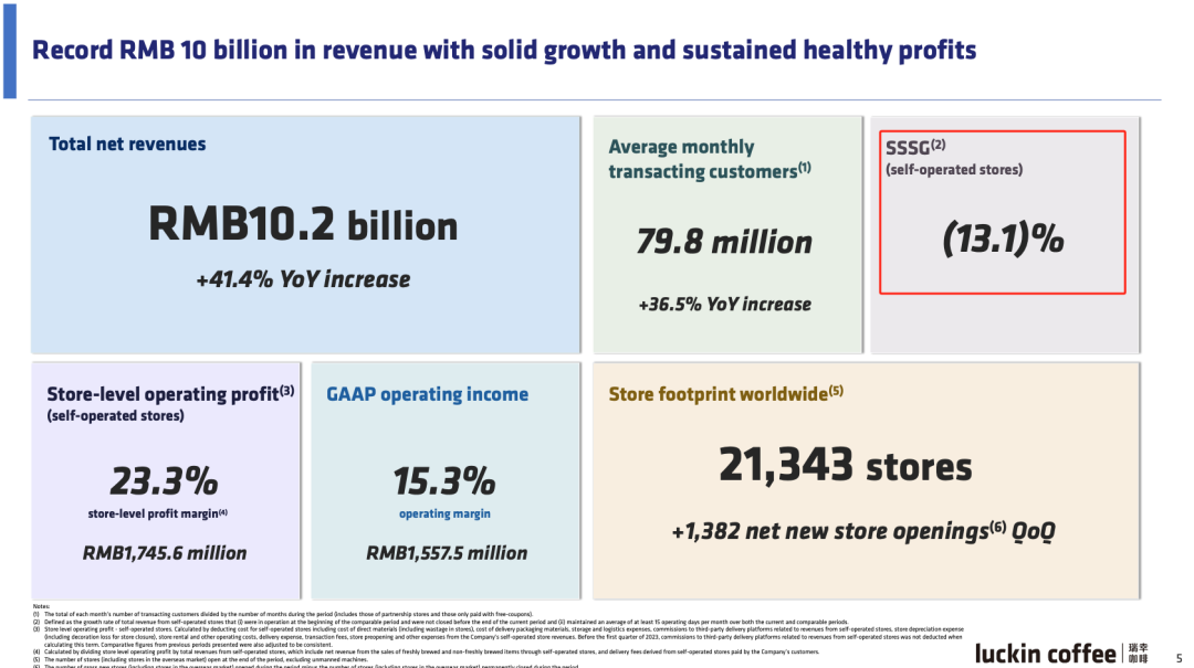 但價(jià)格戰(zhàn)的陰霾并沒有完全消散,三季度自營門店同店銷售增長率為-13.1%,這已經(jīng)是連續(xù)3個(gè)季度負(fù)增長,此前瑞幸曾連續(xù)6個(gè)季度高歌猛進(jìn)。