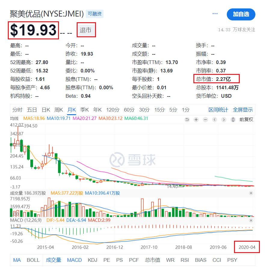 盡管陳歐迅速回應(yīng)并砍掉了第三方平臺(tái)上的奢侈品業(yè)務(wù),但聚美優(yōu)品的業(yè)績依然一落千丈。 三年之后,聚美優(yōu)品的市值僅存3億多美元,市值蒸發(fā)將近 95%。