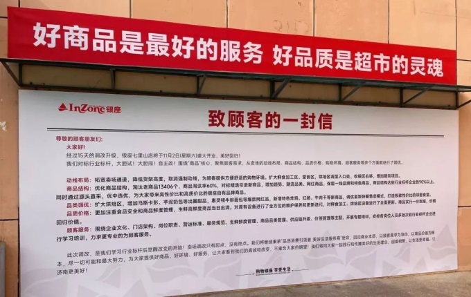11月2日,經(jīng)過15天的調(diào)改升級,銀座集團(tuán)旗下的超市銀座七里山店開業(yè)。此次改造是銀座集團(tuán)首家自主爆改門店,與此同時(shí),濟(jì)南商城店精致超市也煥然升級,并一同開業(yè)。