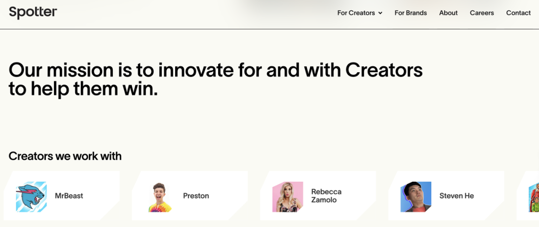 Spotter官網首頁的宣言,以及Spotter已經合作的紅人