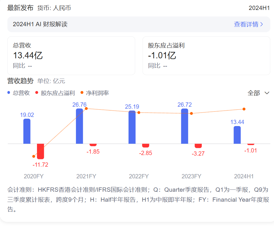 據(jù)友寶在線2024年半年報(bào),其收入為13.44億元,同比增長約7.3%,今年上半年,友寶在線的虧損0.99億元,同比收窄約32.9%。但友寶在線至今仍在虧損,財(cái)報(bào)顯示,2020年、2021年、2022年及2023年四個完整年度,友寶在線分別虧損11.71億元、1.85億元、2.85億元及3.27億元。