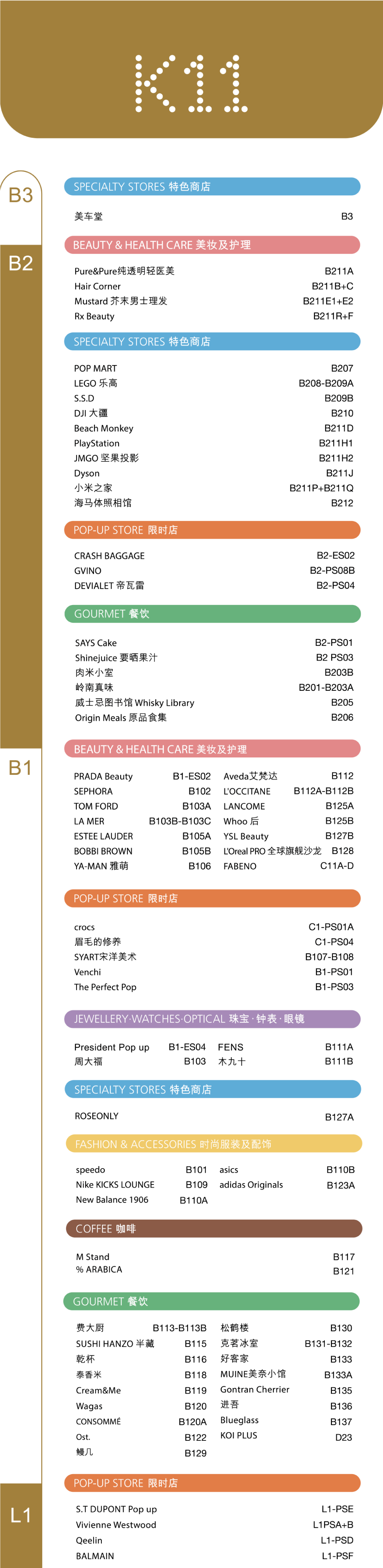 除了一直重點(diǎn)調(diào)整的樓層外,廣州K11其它樓層的品牌也值得關(guān)注。