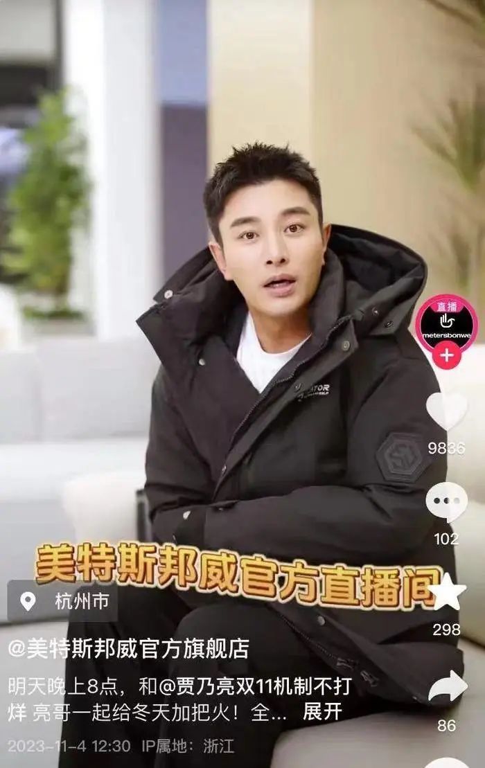 賈乃亮曾在2023年11月為美特斯邦威帶貨 圖片來源:美特斯邦威抖音