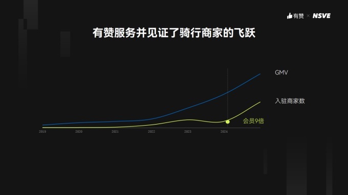 有贊作為頭部商家服務(wù)公司,同樣見(jiàn)證了騎行這一細(xì)分行業(yè)的潛力。有贊COO兼聯(lián)席總裁浣昉在演講中透露,2023年使用有贊的騎行商家數(shù)是2021年的10倍,GMV也增長(zhǎng)了400%,今年預(yù)計(jì)騎行商家的GMV將破億。更值得注意的是,有贊騎行商家今年的會(huì)員數(shù)是去年的9倍,以老客為主的會(huì)員運(yùn)營(yíng)和私域成交卓有成效。