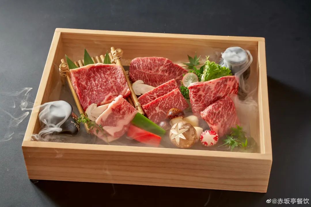 2005年創(chuàng)立的赤坂亭,早已是日料界的老網(wǎng)紅了。品牌主打日式炭火燒肉、鐵板燒、精致日料,人均消費超300元。