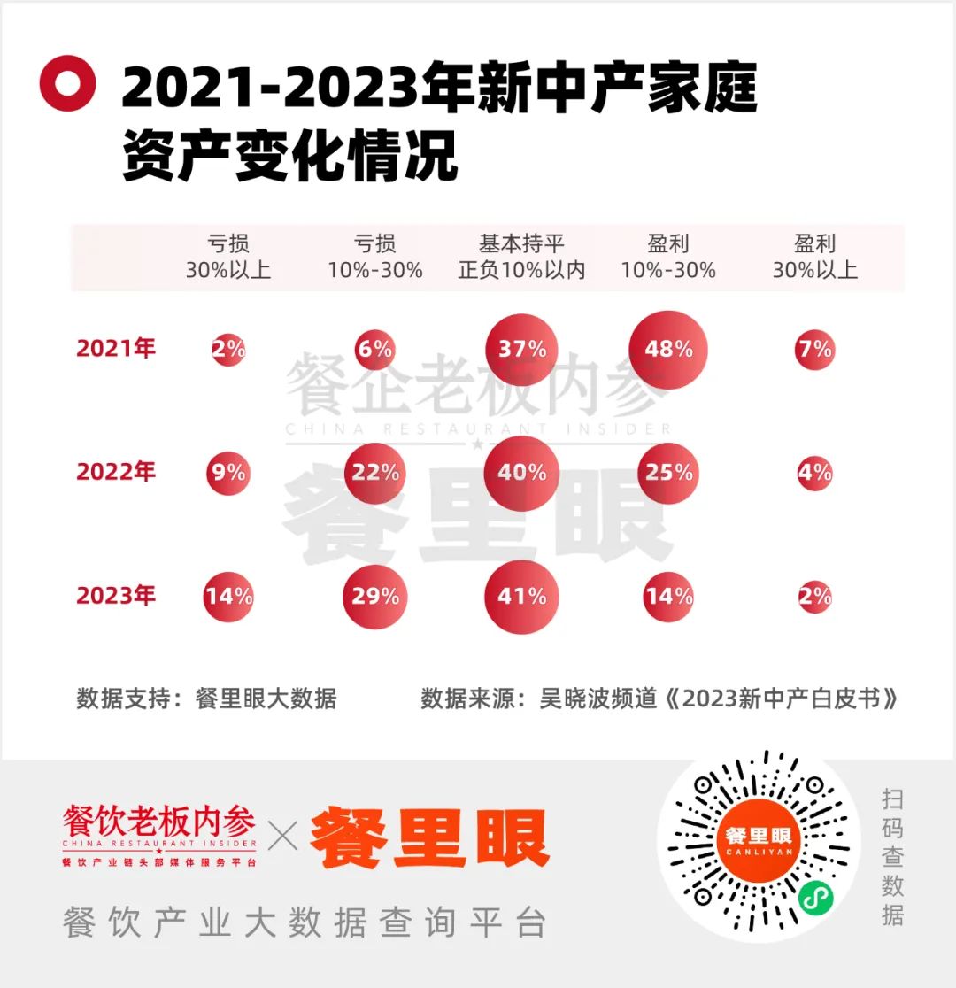 《2023新中產(chǎn)白皮書》顯示,2023年,遭遇資產(chǎn)縮水的家庭正在變得更多。有43%的家庭資產(chǎn)縮水,這個(gè)數(shù)字在2022和2021年分別為31%和8%。這迫使他們?cè)谙M(fèi)上變得更加謹(jǐn)慎,以減緩財(cái)富流失速度,保住自己好不容易換來(lái)的中產(chǎn)身份。