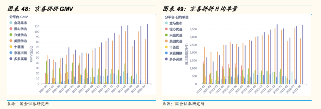 但這換來的是,2021年高峰時期,京喜拼拼的日均單量也沒超過700萬單。第一梯隊的美團(tuán)優(yōu)選、多多買菜的日均單量都已經(jīng)超過了4000萬單。