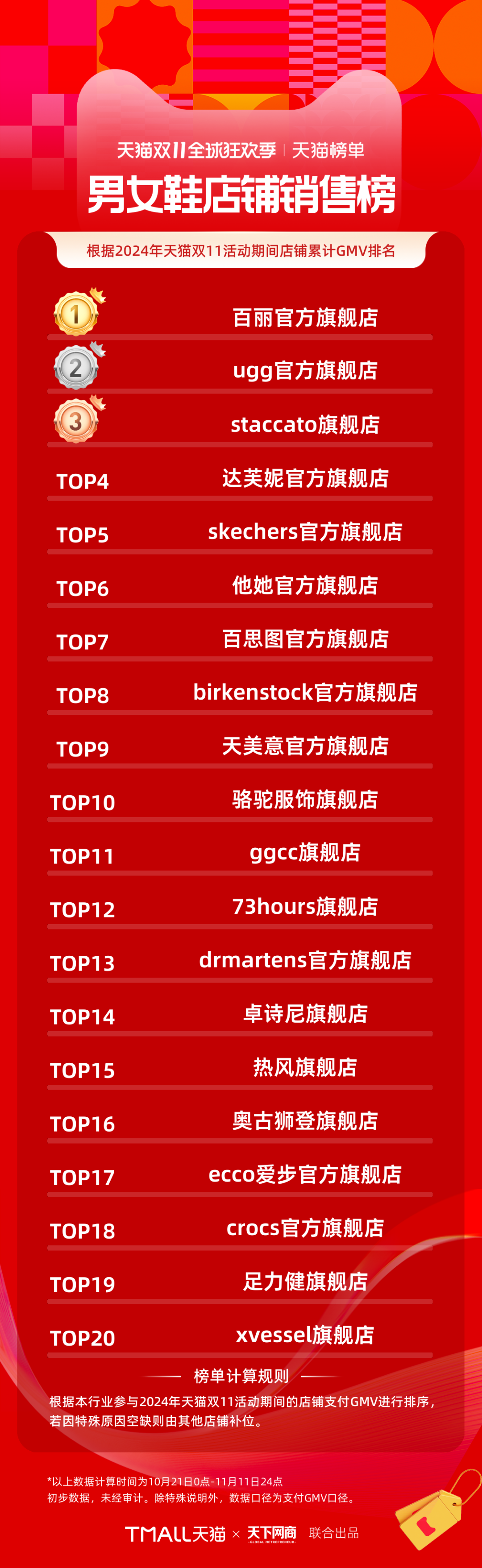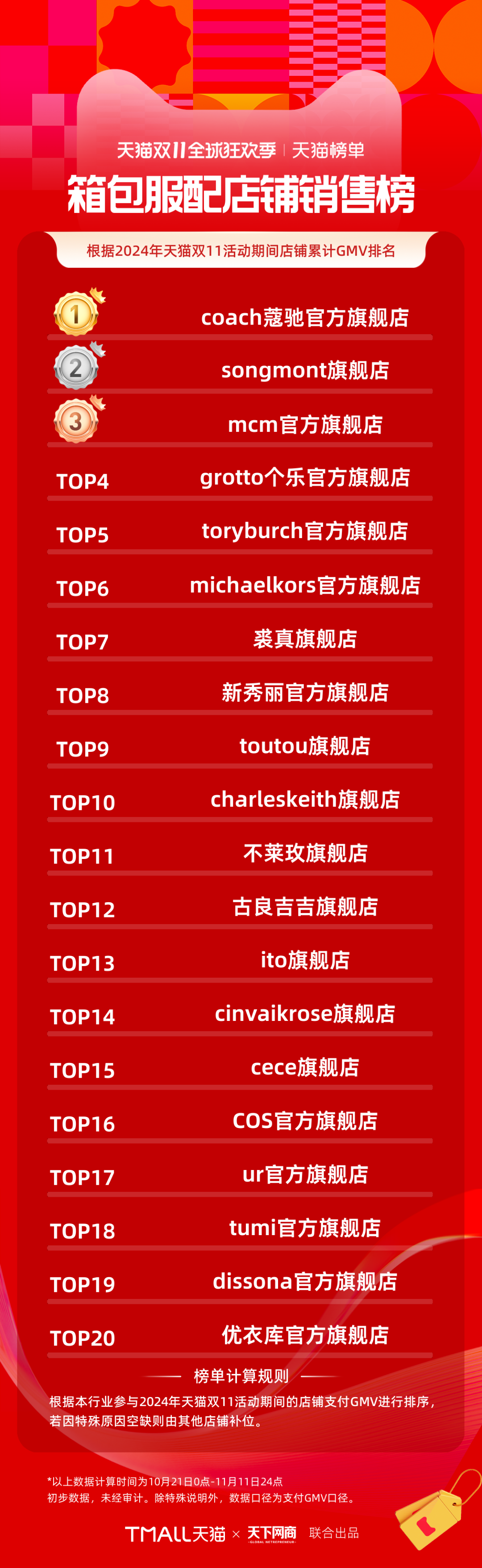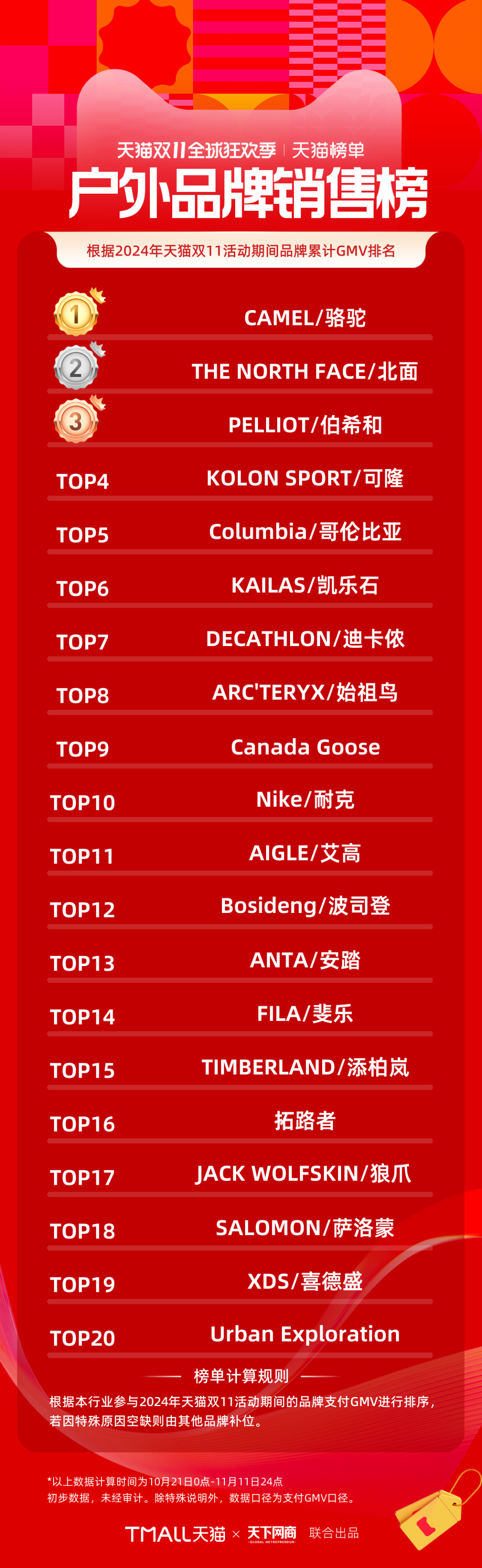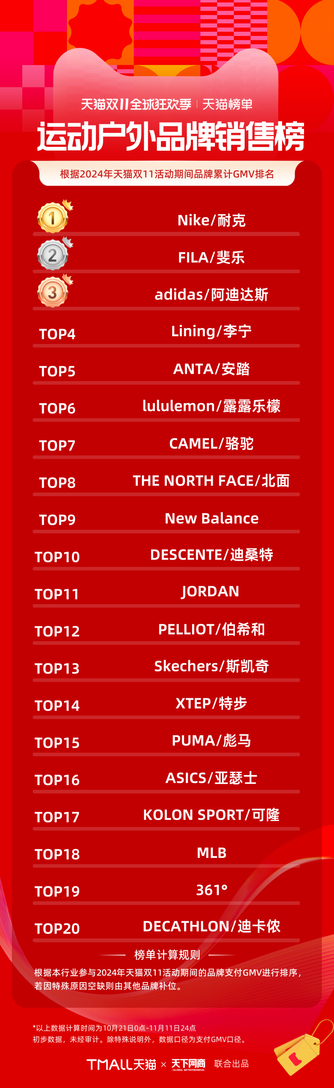 以下為《天下網(wǎng)商》聯(lián)合天貓發(fā)布的2024年天貓雙11全周期(10月21日-11月11日)品牌成交排行榜。
