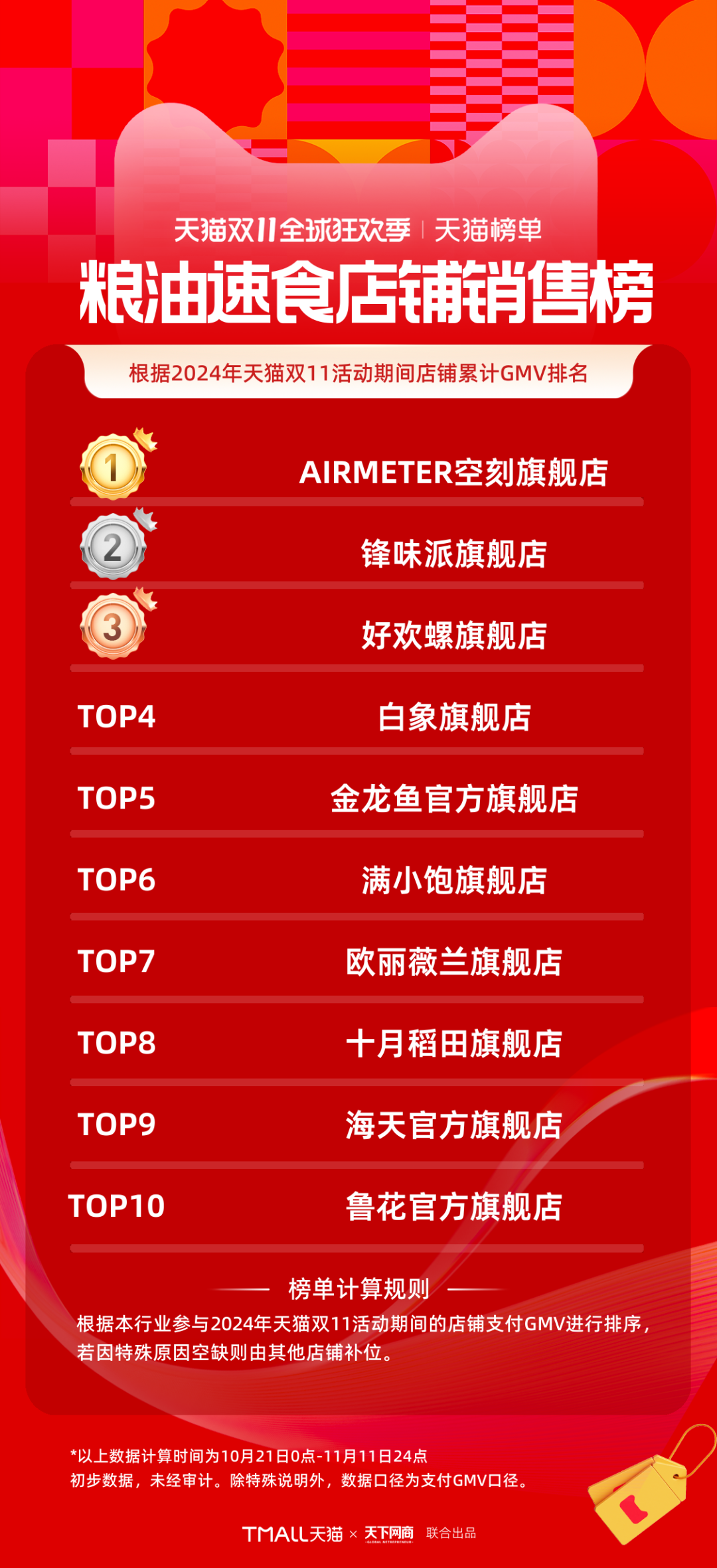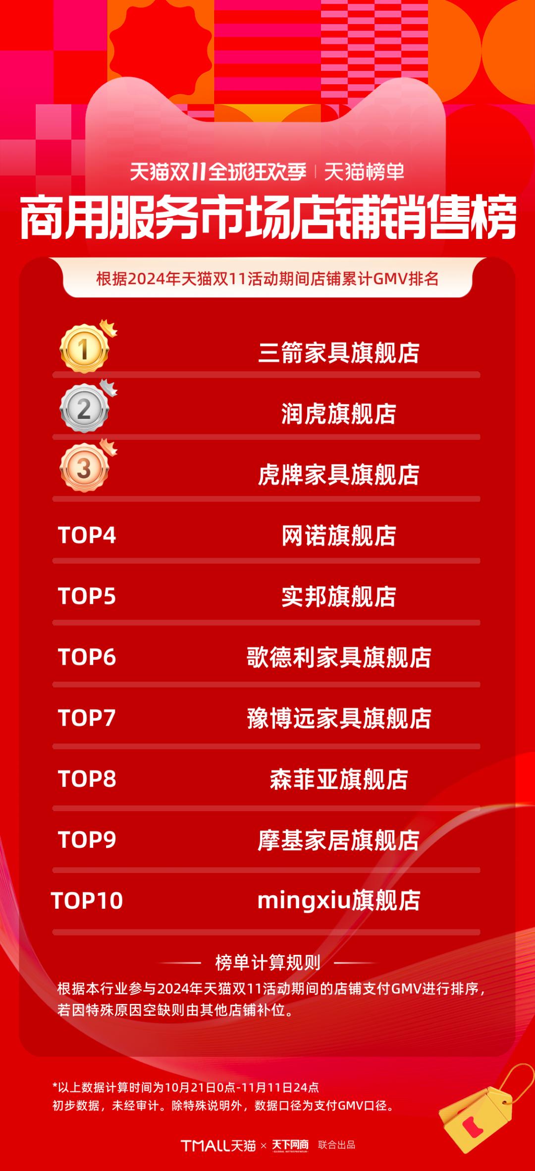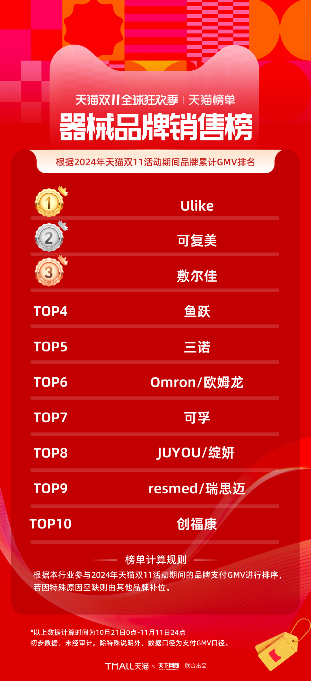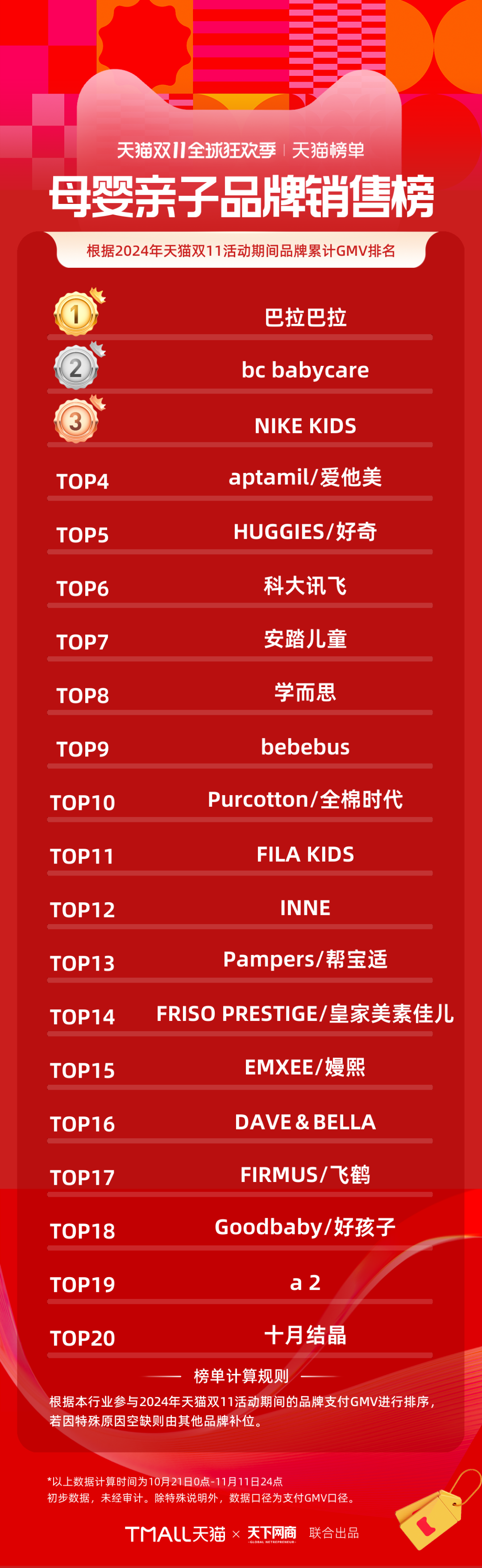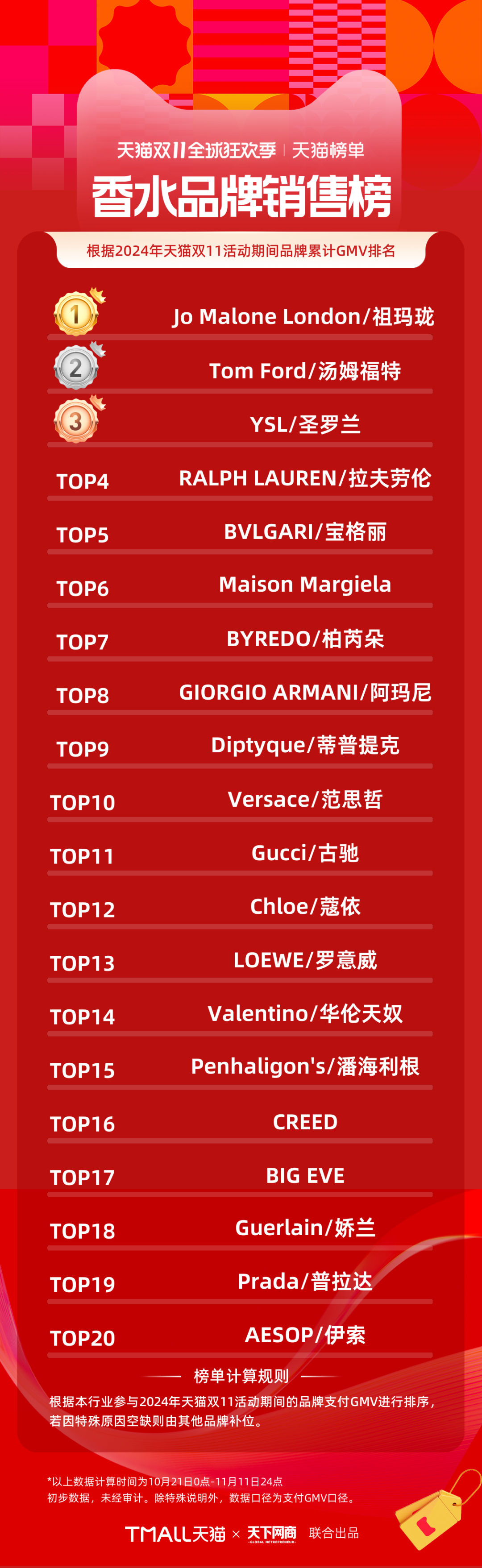 以下為《天下網(wǎng)商》聯(lián)合天貓發(fā)布的2024年天貓雙11全周期(10月21日-11月11日)品牌成交排行榜。