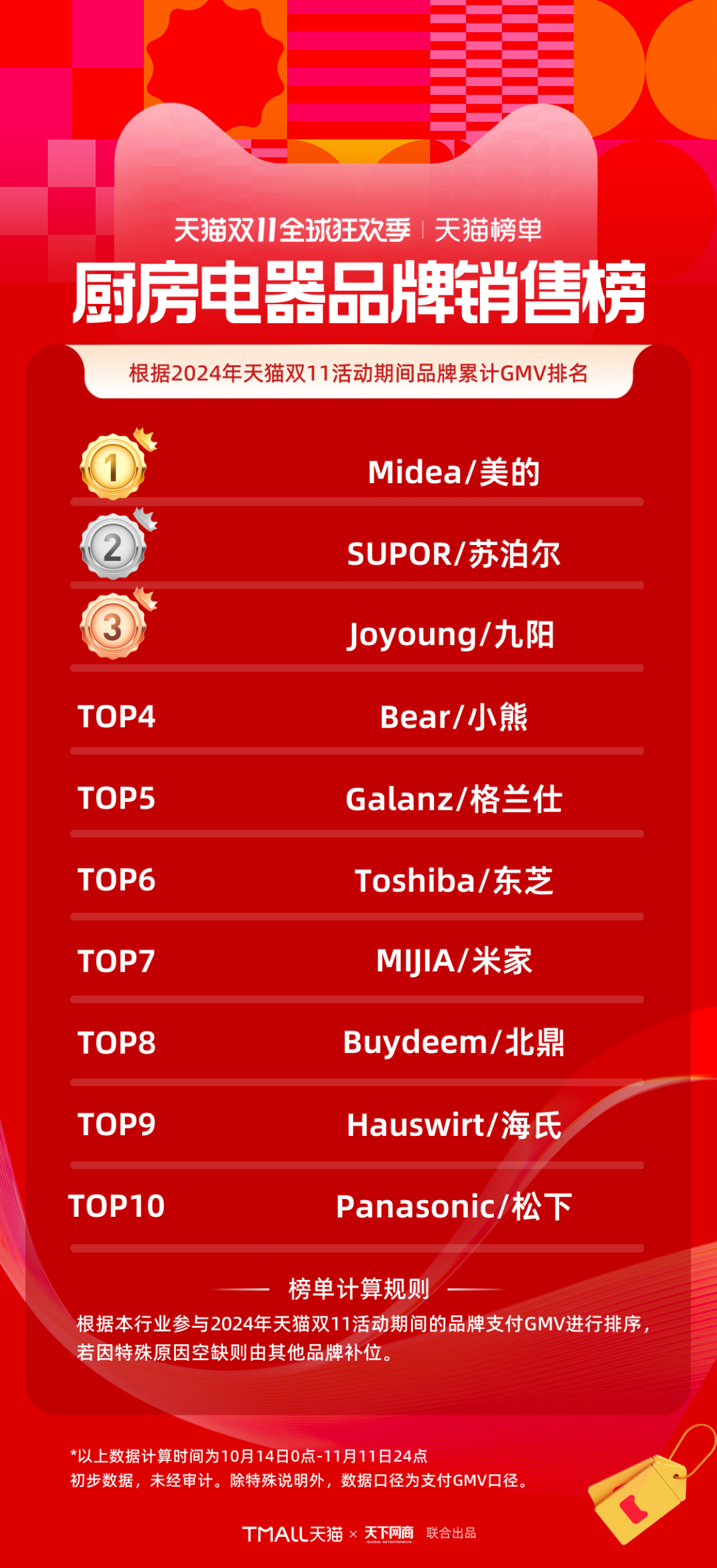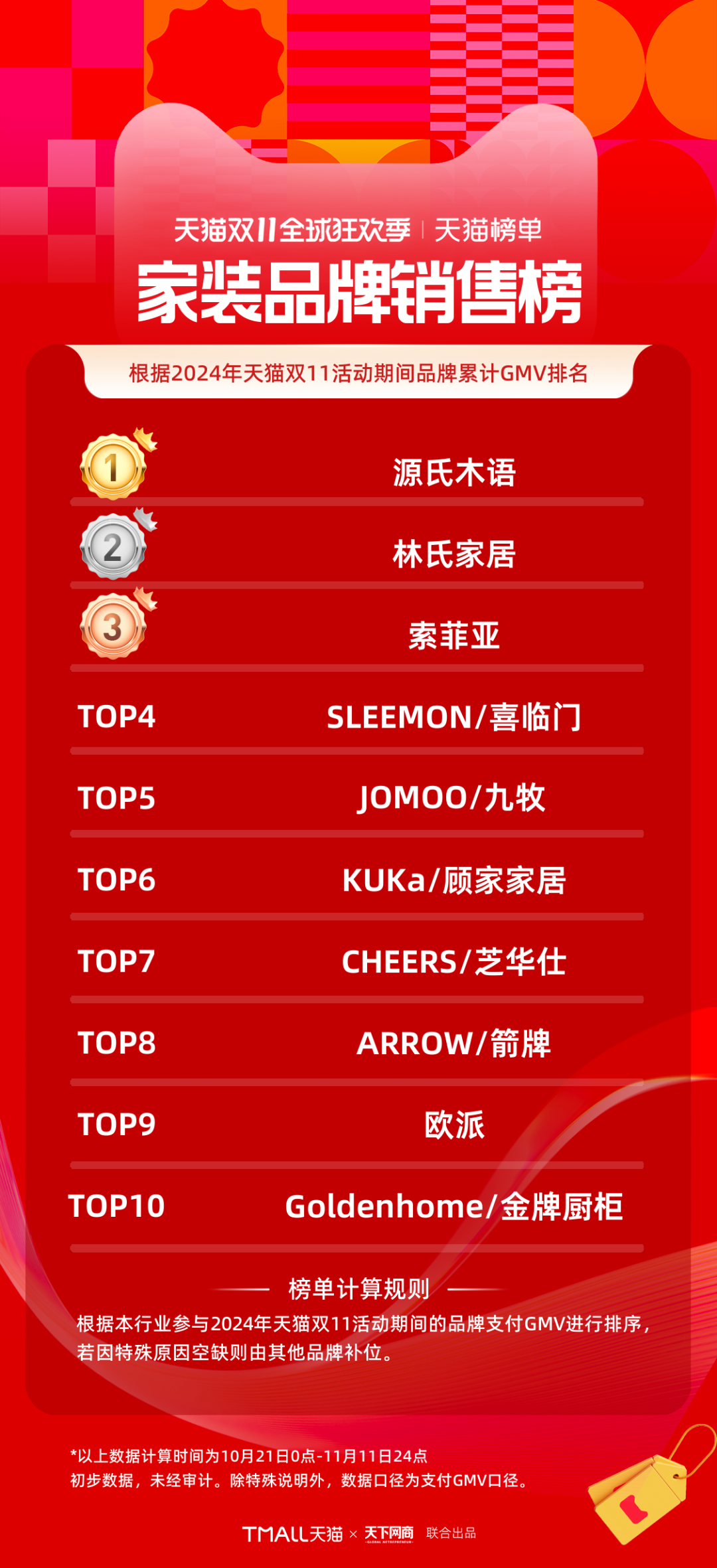 2024天貓雙11全周期品牌成交排行榜出爐!