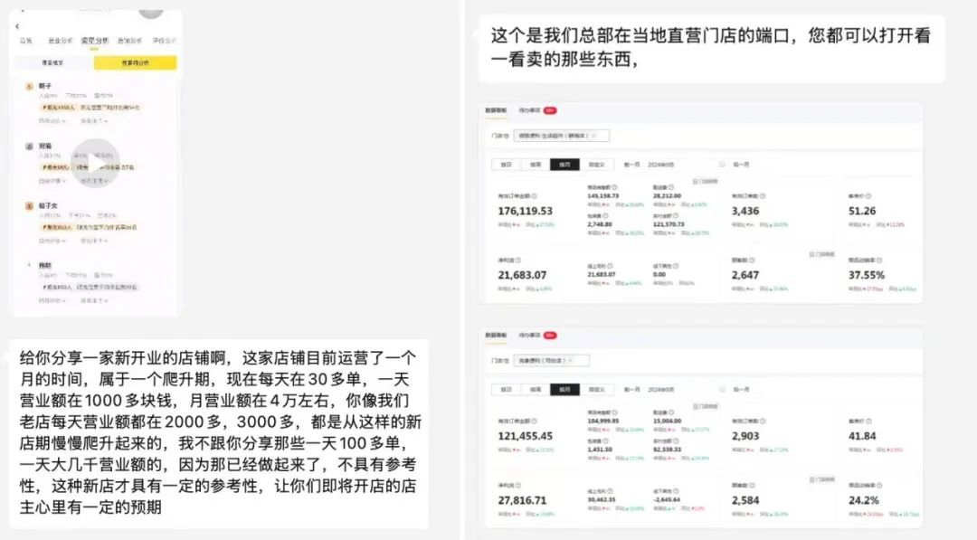 招商人員會群發(fā)門店的營業(yè)數(shù)據(jù)給有意愿加盟的客戶。圖源:聊天截圖