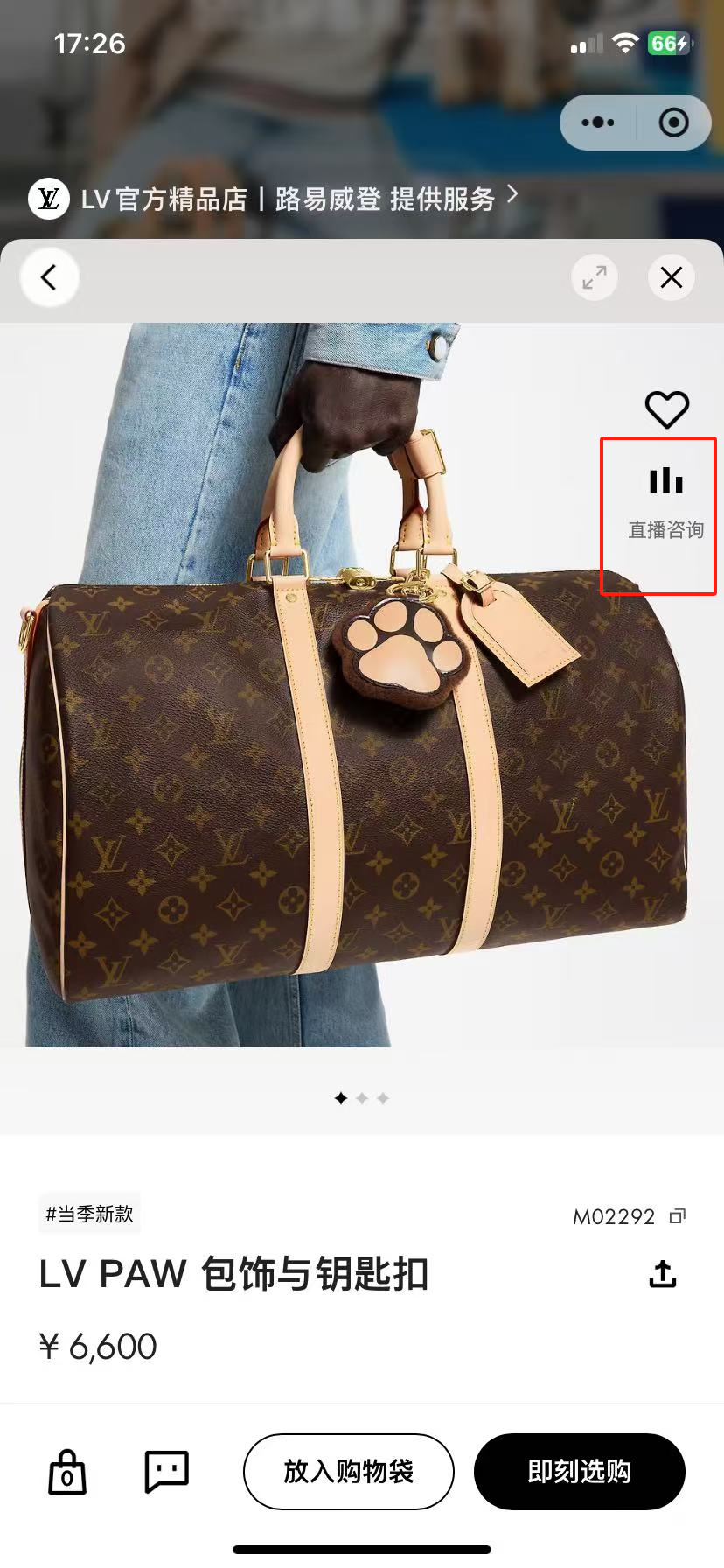 LV小程序商品端直播入口 來源:微信截圖