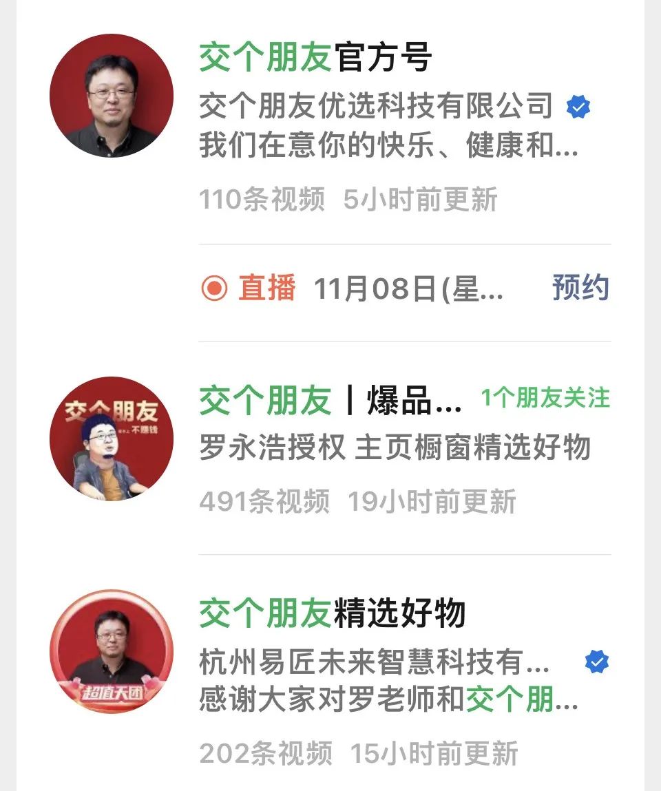 值得一提的是,自羅永浩退出后,“交個朋友”并未在個人IP的打造上有太大進展,而是通過拓寬品類和平臺實現(xiàn)直播業(yè)務的“矩陣化”。目前,“交個朋友”在美妝、酒類、服飾等多個垂類消費領域的直播間已經(jīng)超過50個;同時,除了淘寶、抖音和京東,“交個朋友”也陸續(xù)進駐了視頻號、小紅書等新平臺。正如黃賀所言,“交個朋友”要做的是一個可以分層的商場,“建立多個品類的子賬號,形成不依賴主播的穩(wěn)定的直播模式!