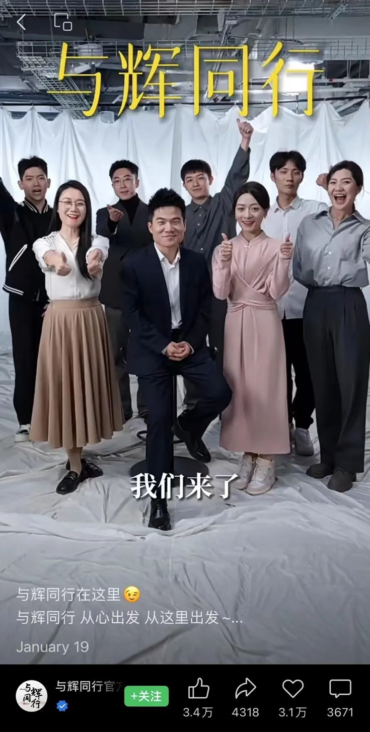 終于,2023年12月26日,董宇輝離開“東方甄選”,創(chuàng)辦新賬號“與輝同行”,開啟獨(dú)立直播帶貨之旅。