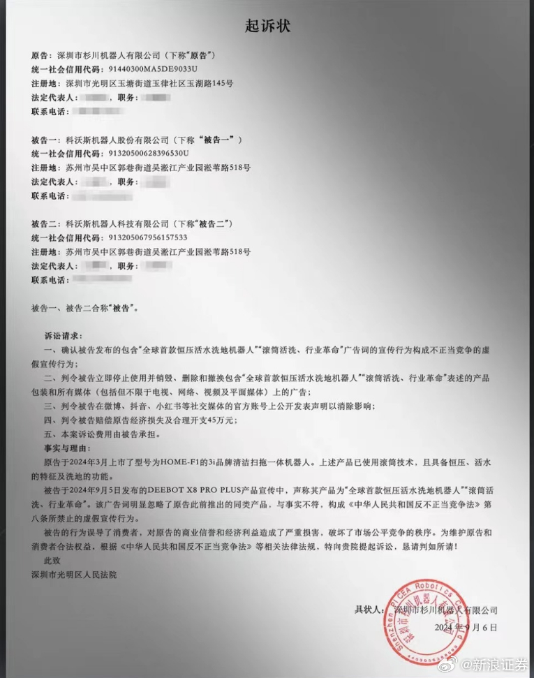 然而隨后不久,深圳市杉川機(jī)器人有限公司(以下簡(jiǎn)稱“杉川機(jī)器人”)便公開發(fā)布聲明稱科沃斯“全球首款恒壓活水洗地機(jī)器人”、“滾筒活洗、行業(yè)革命”的表述涉嫌虛假宣傳,并訴請(qǐng)法院判令科沃斯賠償經(jīng)濟(jì)損失及合理開支45萬(wàn)元、并刪除相關(guān)廣告以及公開發(fā)布聲明。