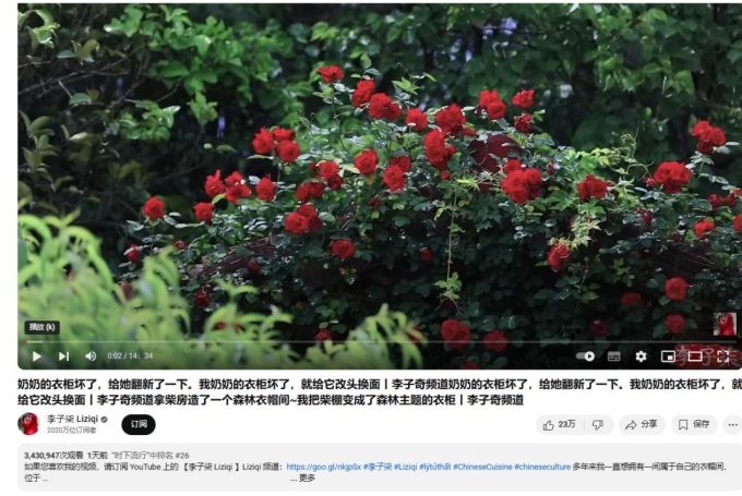 且李子柒在外網(wǎng)保持有著較大的影響力,其不僅以1410萬的YouTube訂閱量,刷新由她創(chuàng)下的“最多訂閱量的YouTube中文頻道”的吉尼斯世界紀錄稱號,而且在停更的三年多時間里,粉絲仍暴漲500萬。視頻更新后,李子柒的粉絲量已破2000萬。