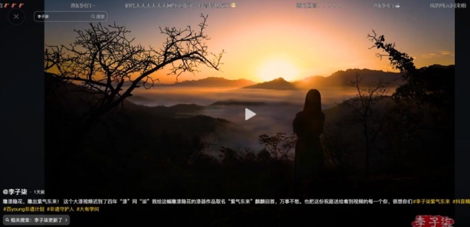 11月12日下午4時30分,李子柒發(fā)布了一條以中國非物質(zhì)文化遺產(chǎn)“漆器”為主題的視頻,回到大眾視野。
