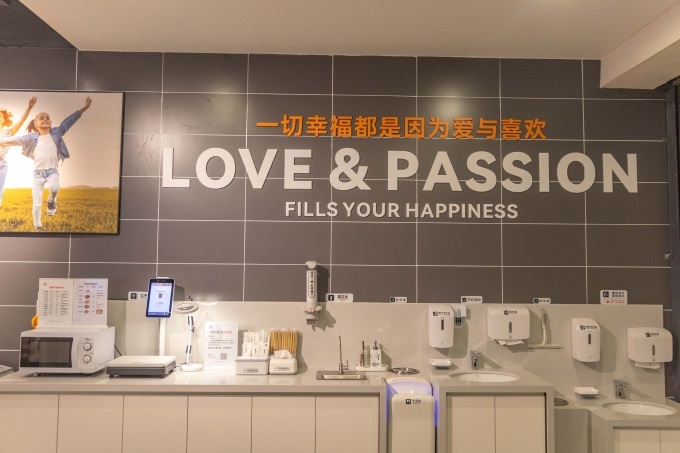 此外,門店增設(shè)了顧客休息區(qū)、母嬰室、寵物安置區(qū)等等服務(wù)模塊,免費(fèi)冰袋、直飲水、微波爐、放大鏡、愛心藥箱、身高體重測(cè)量?jī)x、血壓測(cè)量?jī)x、愛心輪椅等設(shè)備設(shè)施齊全,還配置了1小時(shí)內(nèi)可免費(fèi)使用的充電寶。