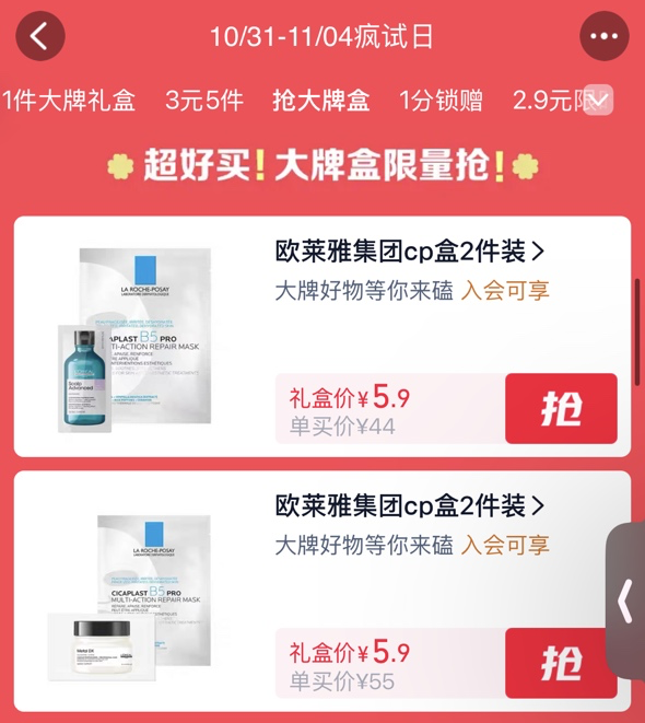 例如,大牌CP盒為品牌相似人群提供了人群聯(lián)合通道,通過(guò)品牌組盒的方式,實(shí)現(xiàn)聯(lián)合拉新。以理膚泉&LorealPro為例,活動(dòng)期間近萬(wàn)份樣品迅速派罄,且商家操作低成本,物流無(wú)成本,真正做到了聚焦品牌增長(zhǎng),為品牌拉新降本增效。